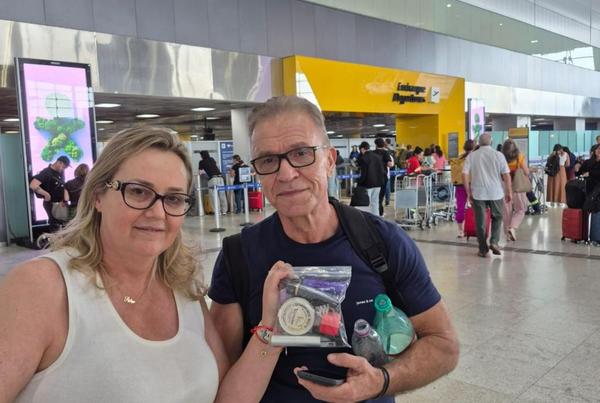Maria Eduarda Barros, de 25 anos, também não teve empecilhos para embarcar para o Chile, em 2024, sem a embalagem plástica. Mas, no último dia 22, ao viajar para o Panamá com o marido, Vitor Silva, de 27 anos, foi surpreendida com a cobrança.